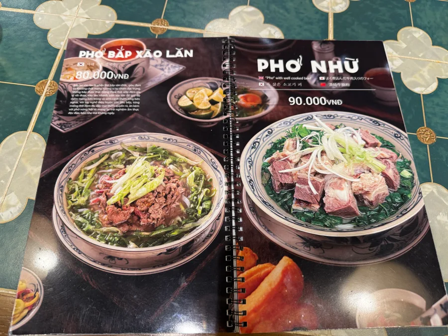 우선 기본 소고기 쌀국수는 8만동(4400원 정도)인데 소고기 부위에 따라서 7~9만동 정도 합니다. (4000원~ 4900원)