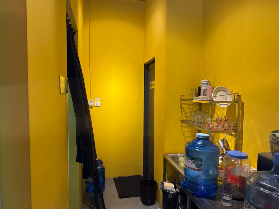식당 구석에 있는 화장실입니다.