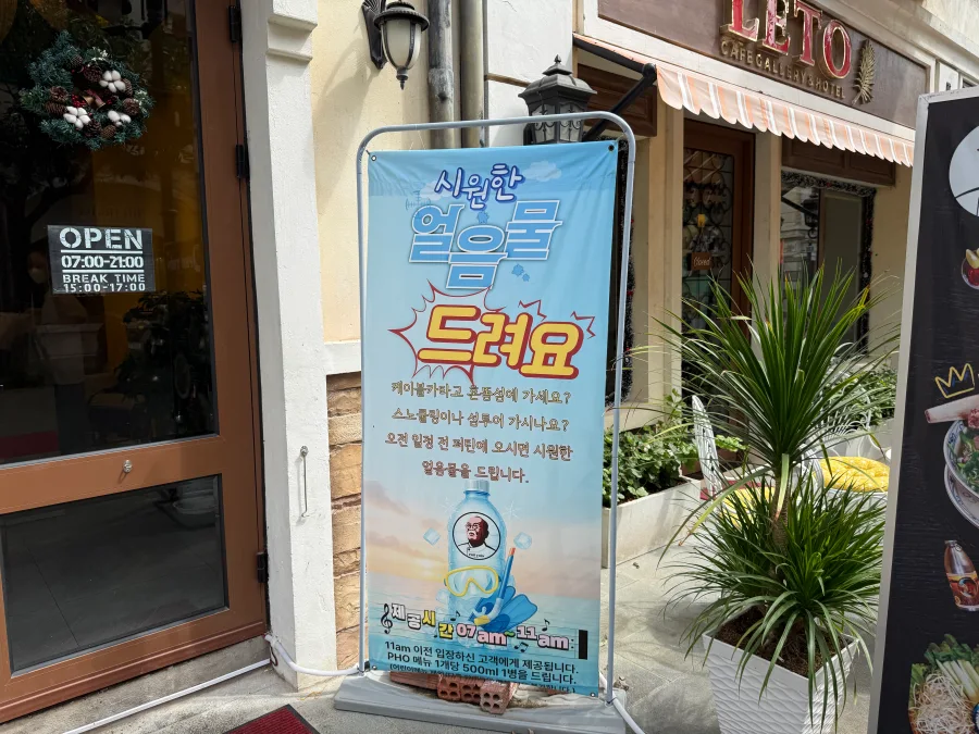 참고로 아침에 오시면 (11시 이전) 얼음물을 무료로 드린다고 하니 참고하세요~ (혼똔섬 가시는 분들을 위해.)