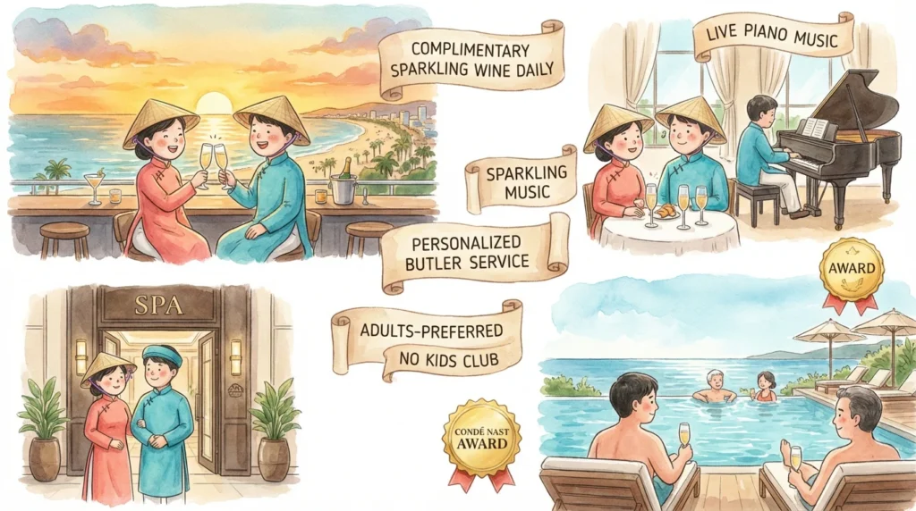 대형 글로벌 체인에서는 느끼기 힘든 세심하고 따뜻한 부티크 서비스가 일품입니다. 특히 아침마다 무제한으로 제공되는 스파클링 와인과 라이브 피아노 연주가 어우러진 조식은 투숙객들에게 잊지 못할 낭만을 선사하며, Condé Nast Traveler 선정 아시아 상위 리조트에 이름을 올리기도 했습니다. 환경 친화적인 정원 관리와 롱비치 해변 전망도 일품입니다.